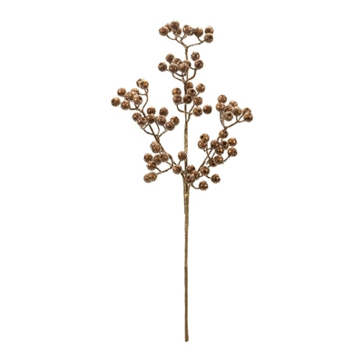 Enhance your decor with this elegant 22" Gold Berry Spray. Its refined design and rich golden tones bring a touch of sophistication and warmth, perfect for adding understated luxury to any seasonal arrangement or centerpiece.